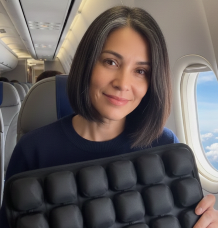 "ชอบมากที่ม้วนเก็บได้เล็กนิดเดียว พกขึ้นเครื่องสะดวกสุดๆ เบาะนุ่มกำลังดี กระจายน้ำหนักได้ทั่ว ไม่กดทับจนเมื่อย คนวัยเราต้องมีติดตัวไว้จริงๆ ค่ะ"